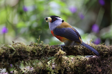We woke up early and took a short drive to Dona Dora. Dona Dora was a place that everyone was talking about. They would say how incredible it was and how diverse the birds were and they weren't mistaken. We had a delicious breakfast and even stayed long enough for a great lunch as well. There was a long counter with stools over looking the forest with hummingbird feeders next to our eating area. Eating while watching the hummingbirds fly all around us was a highlight for me. While facing the forest they has established feeder areas for the birds. The birds enjoy a diversity of feeders with papayas, guava, bananas and sweet plantains.