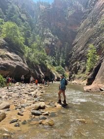 Melisa's top thing she wanted to do was to hike the Narrows in Zion National Park. The Narrows is a walk through the Virgin River and it a must do for anyone traveling to Utah. I'm not going to lie, I did not want to do it. It comes as no surprise, that Melisa is much braver than me and is for sure more athletic. We decided against renting shoes for the hike and just stuck with our hiking boots. The Narrows is a canyon with flowing water that you wade through. From the start I was not liking it. I didn't like that I couldn't see my feet and was constantly slipping on the rocks below. I had fallen in multiple times and was over it. I decided to quit and I'm so glad Melisa decided to go ahead. I sat on a big rock and waited for her. I had my Pb and J and enjoyed my people watching. She was gone for what felt like hours and I was getting nervous. When she rounded that corner and I saw her I was so relieved. She really enjoyed going further into the Narrows.
